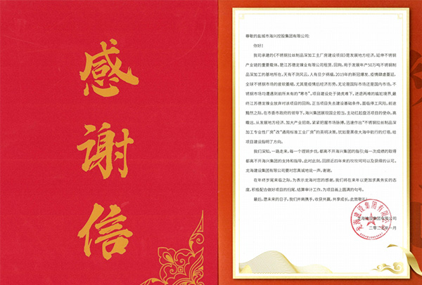 紙短情長(zhǎng) 字字暖心|拉絲廠房項(xiàng)目收到感謝信