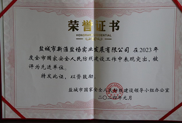 喜報!新灘鹽場榮獲“鹽城市2023年度國家安全人民防線 建設(shè)先進單位”榮譽稱號