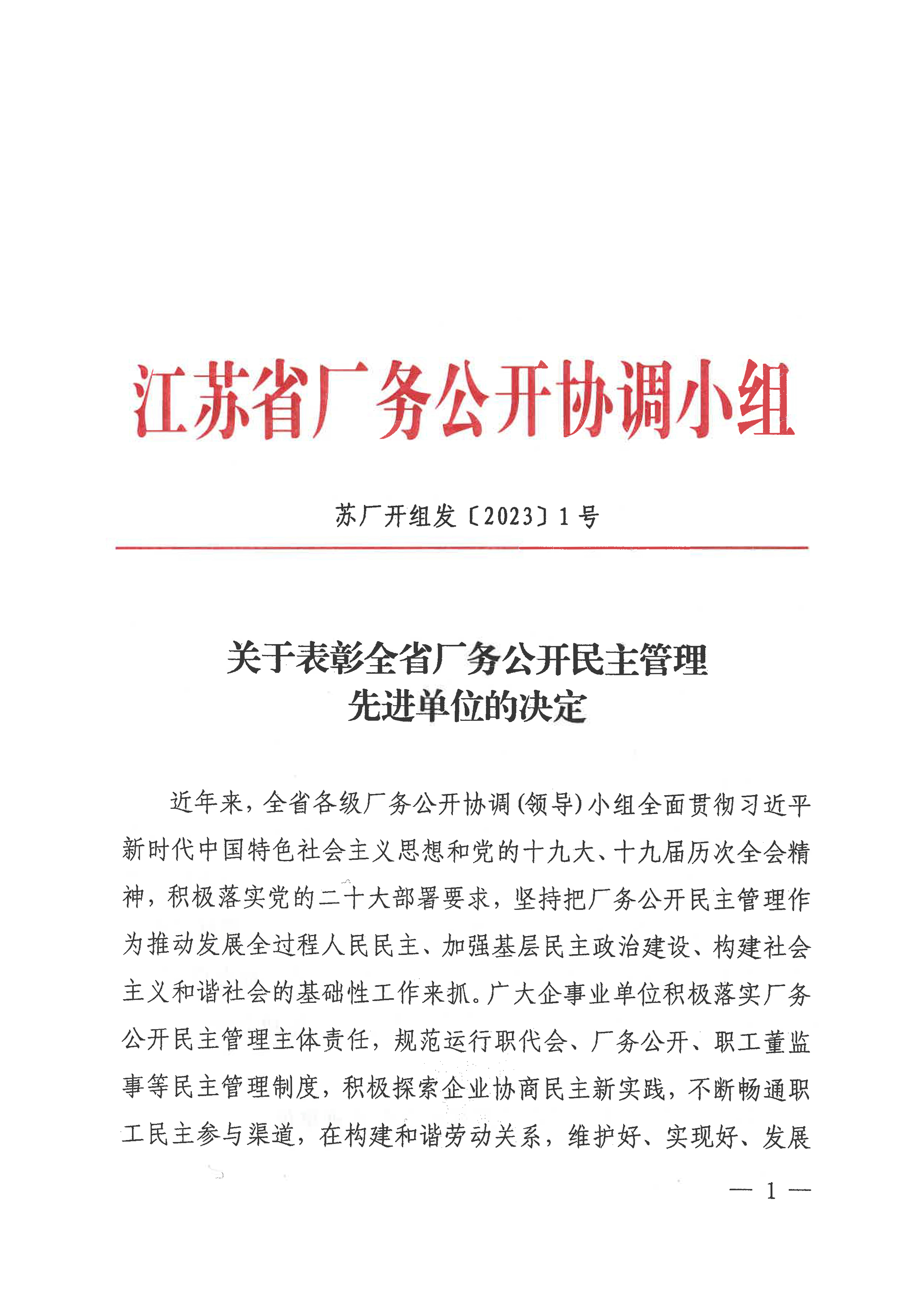 近日,江蘇省廠務(wù)公開協(xié)調(diào)小組下發(fā)《關(guān)于表彰全省廠務(wù)公開民主管理先進(jìn)單位的決定》,海興集團(tuán)獲評“全省廠務(wù)公開民主管理先進(jìn)單位”榮譽(yù)稱號。2023-04-26 -