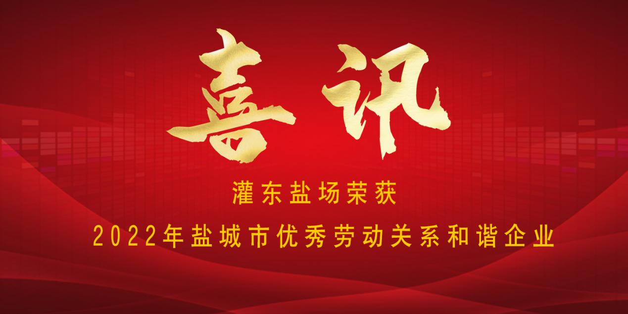 喜訊!灌東鹽場被授予“2022年鹽城市優(yōu)秀勞動關系和諧企業(yè)”