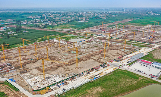 9月7日上午,在濱海港港城保障房項(xiàng)目建設(shè)現(xiàn)場(chǎng),塔吊林立,一派繁忙景象。2021-09-10