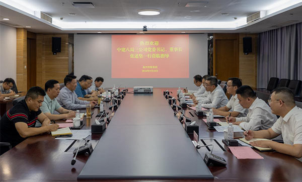 中建八局三公司黨委書記、董事長(zhǎng)張述堅(jiān)一行來(lái)集團(tuán)座談交流