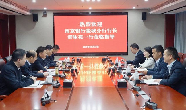 10月23日,集團(tuán)黨委書(shū)記、董事長(zhǎng)董毅會(huì)見(jiàn)南京銀行鹽城分行黃詠花一行,雙方就進(jìn)一步深化金融合作座談交流。集團(tuán)黨委副書(shū)記、總經(jīng)理陳鳴永參加。2025-10-23