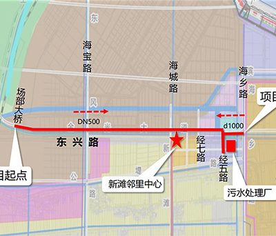 蘇港公司污水收集處理能力提升工程-東興路段一期(經(jīng)七路-海鄉(xiāng)路)位于東興路北側(cè),西起經(jīng)七路,東至海鄉(xiāng)路,全長(zhǎng)約2.5公里,