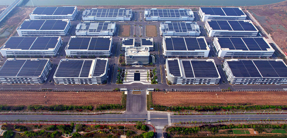 產(chǎn)業(yè)園綠色電力系統(tǒng)由江蘇奧興智城低碳科技有限公司(鹽城市海興產(chǎn)業(yè)投資集團有限公司和北京新奧新能能源投資有限公司共同投資,持股比例分別為49%和51%)投資建設和運營,現(xiàn)已建成13.82MW(直流側(cè)16.09MWp)屋頂分布式光伏及3座微電網(wǎng)配電設施,總投資約4200萬元,創(chuàng)新采用“自發(fā)自用、余電上網(wǎng)”模式,預計每年提供約1600萬千瓦時的清潔電力,年均減排二氧化碳約13500噸,年均節(jié)約標煤約4900噸,為產(chǎn)業(yè)園直接提供綠色、安全、穩(wěn)定的電力。